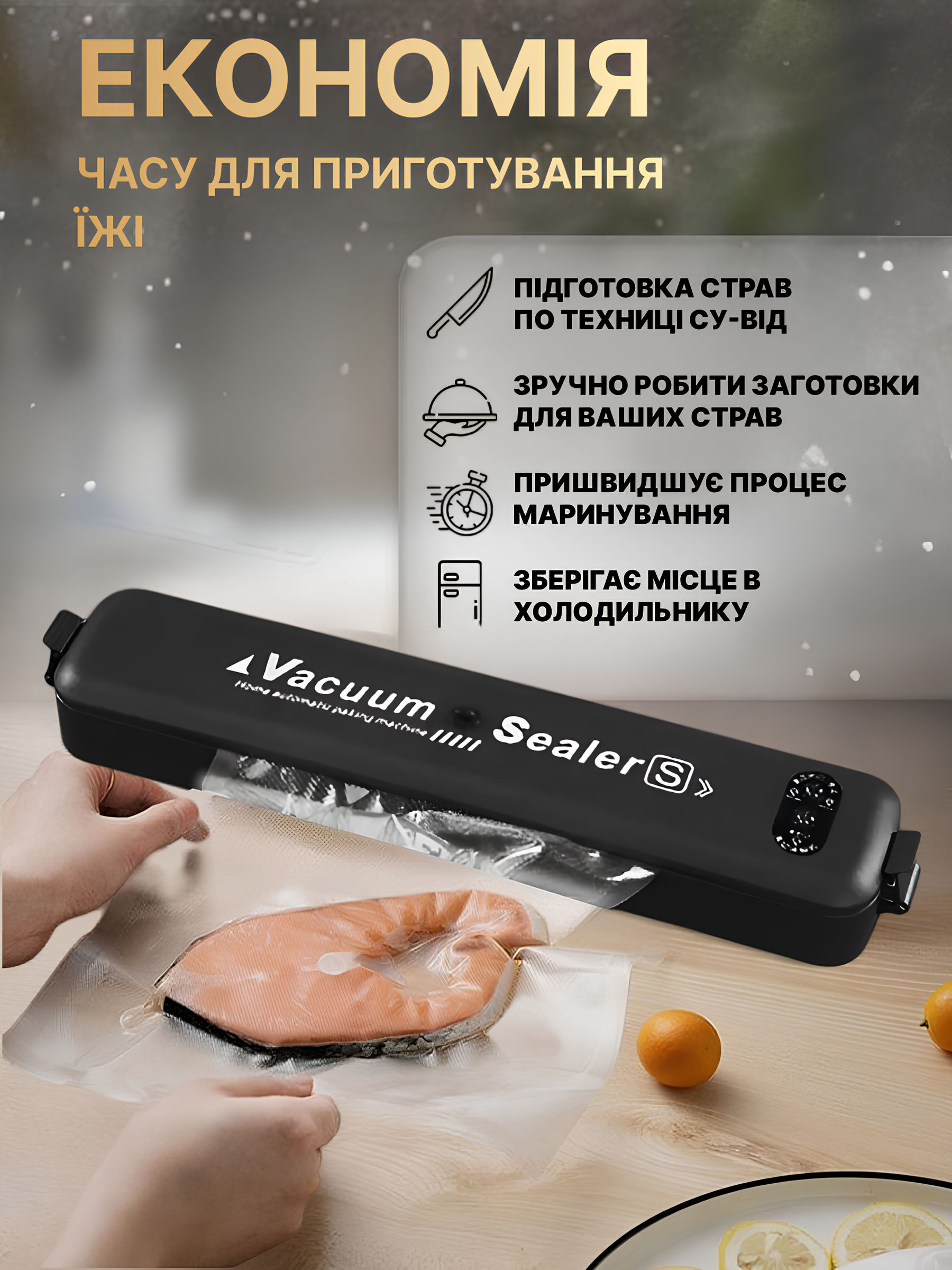 Вакуумний пакувальник VACUUM SEALER — професійне рішення для домашньої кухні.
